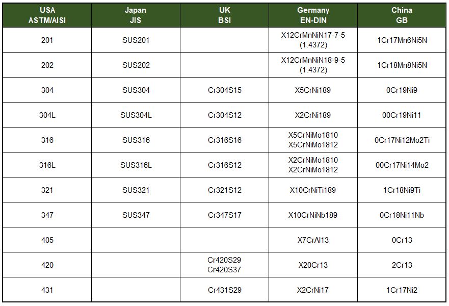 Stainless Steel are commonly graded and available in three series Cross references of stainless steel standards